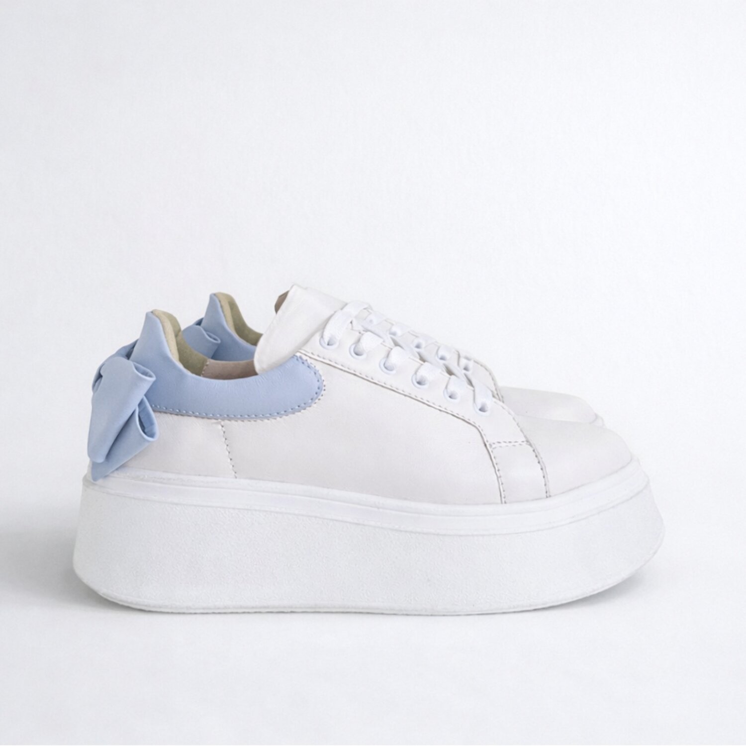 Pantofi casual Piele Naturala Alb cu Blue Bow
