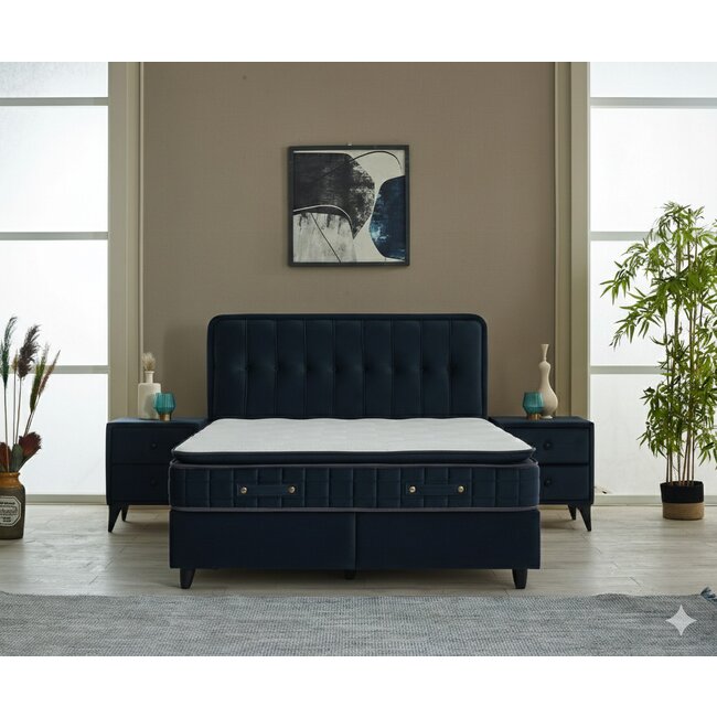 Pat + Saltea gratis Ortax 160/200 cu somiera rabatabila, lada de depozitare si tesatura premium, culoare dark blue
