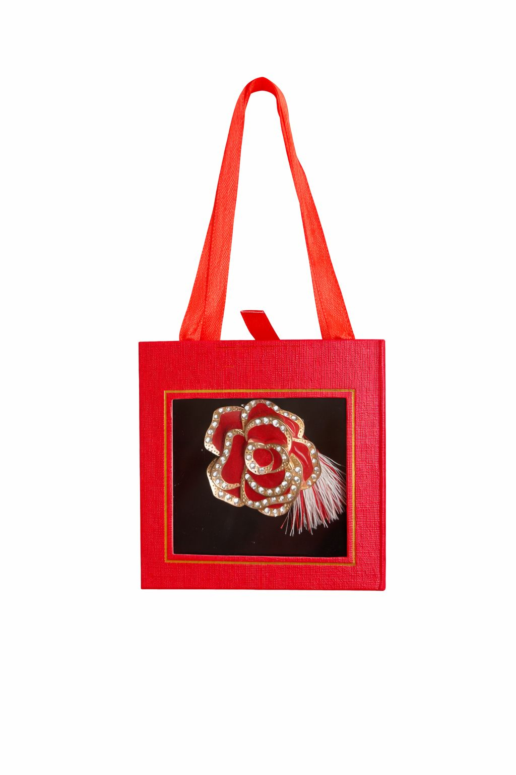 Brosa Martisor 5cm, Trandafir rosu, in cutie gentuta 7x7 cm cu fereastra, cadou 1 Martie Engros