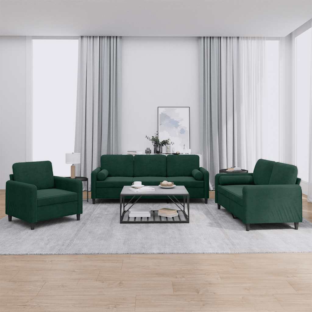 vidaXL Canapea cu perne, 3 locuri, verde închis, catifea