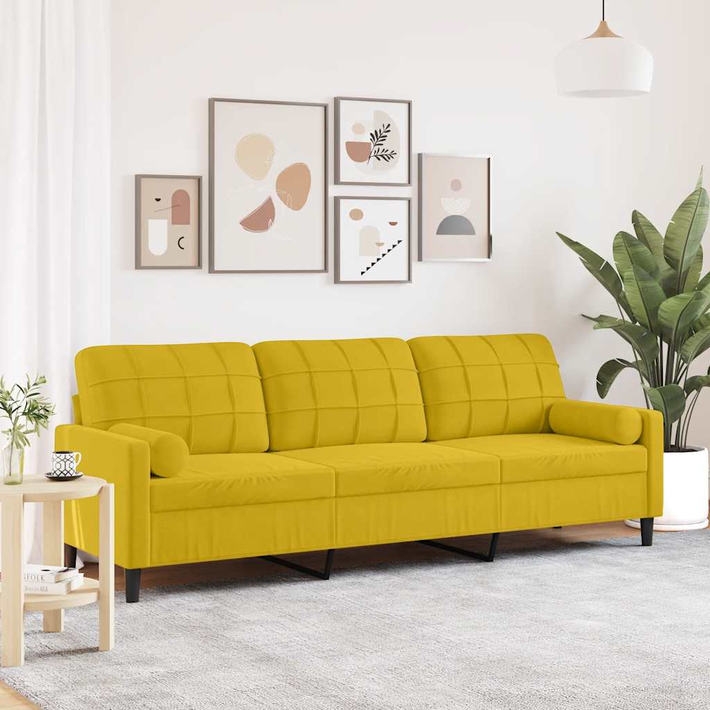 vidaXL Canapea cu 3 locuri cu pernuțe, galben, 210 cm, catifea