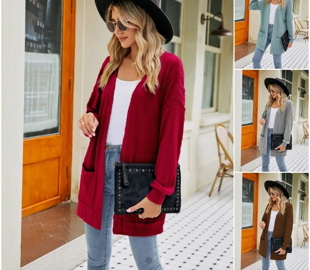 Cardigan fara inchidere cu model uni