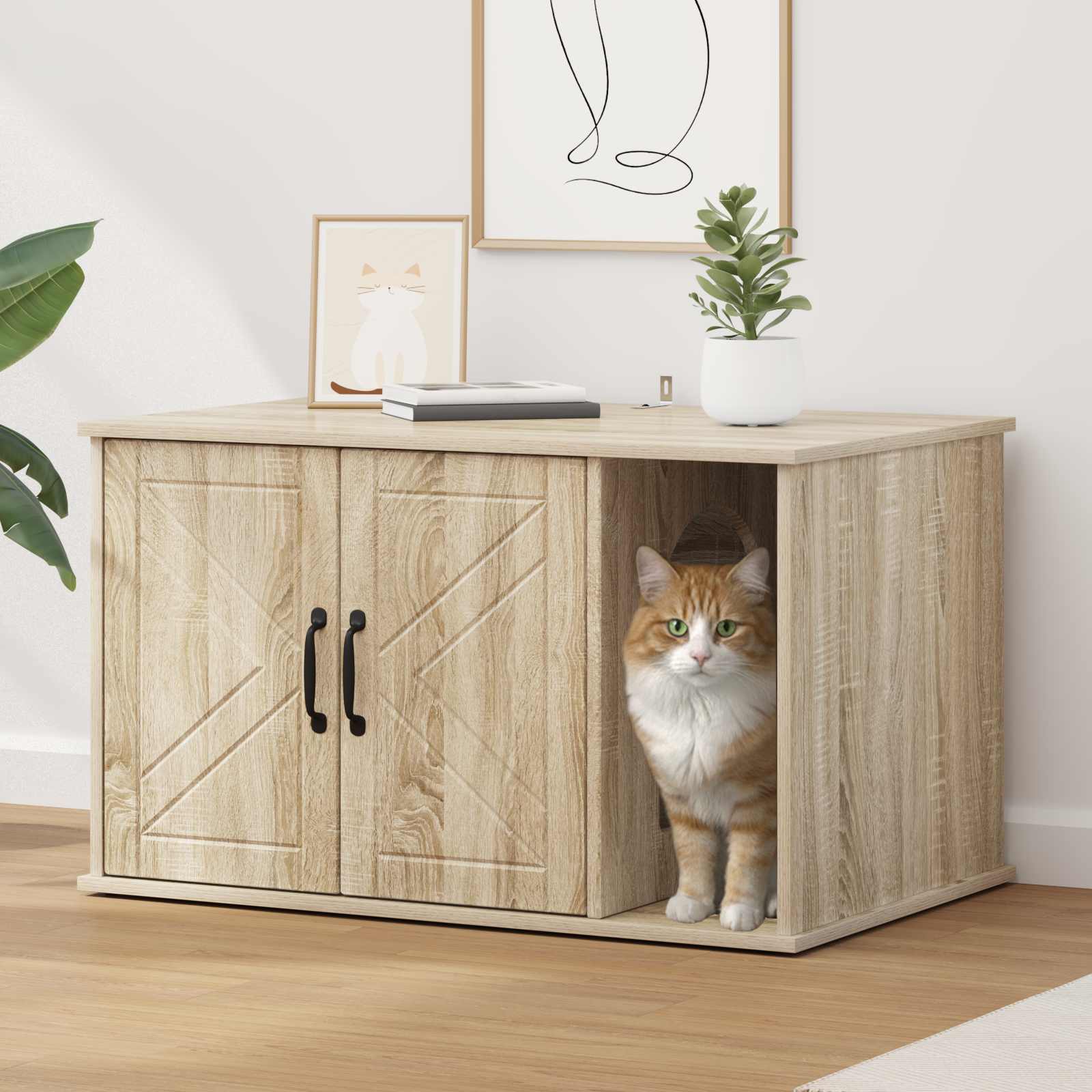 vidaXL Casa pentru pisici Stejar artizanal 85 x 55 x 50,5 cm