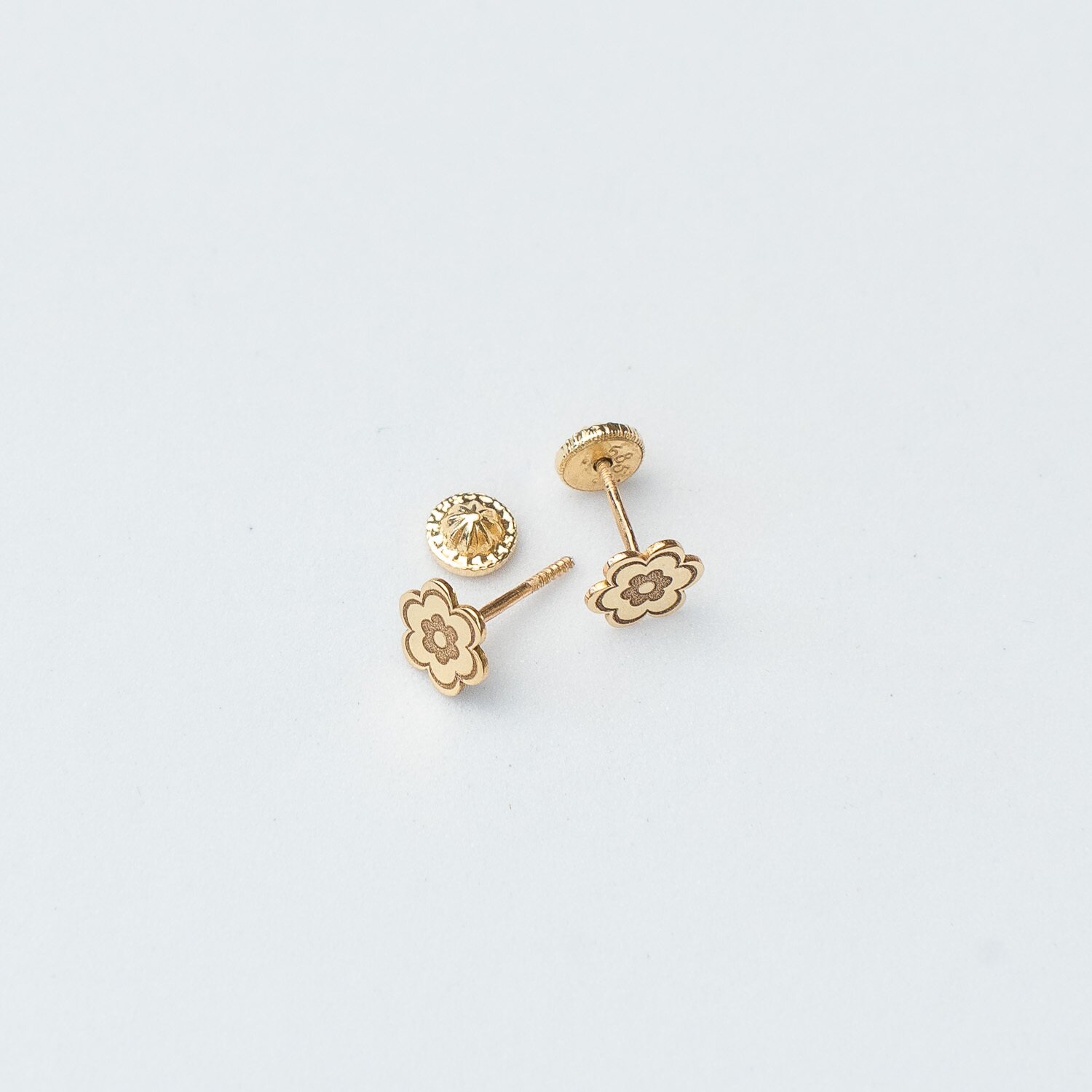 Cercei copii/bebe - Model floare - Aur Galben 14K - Inchizatoare sigura si confortabila cu filet