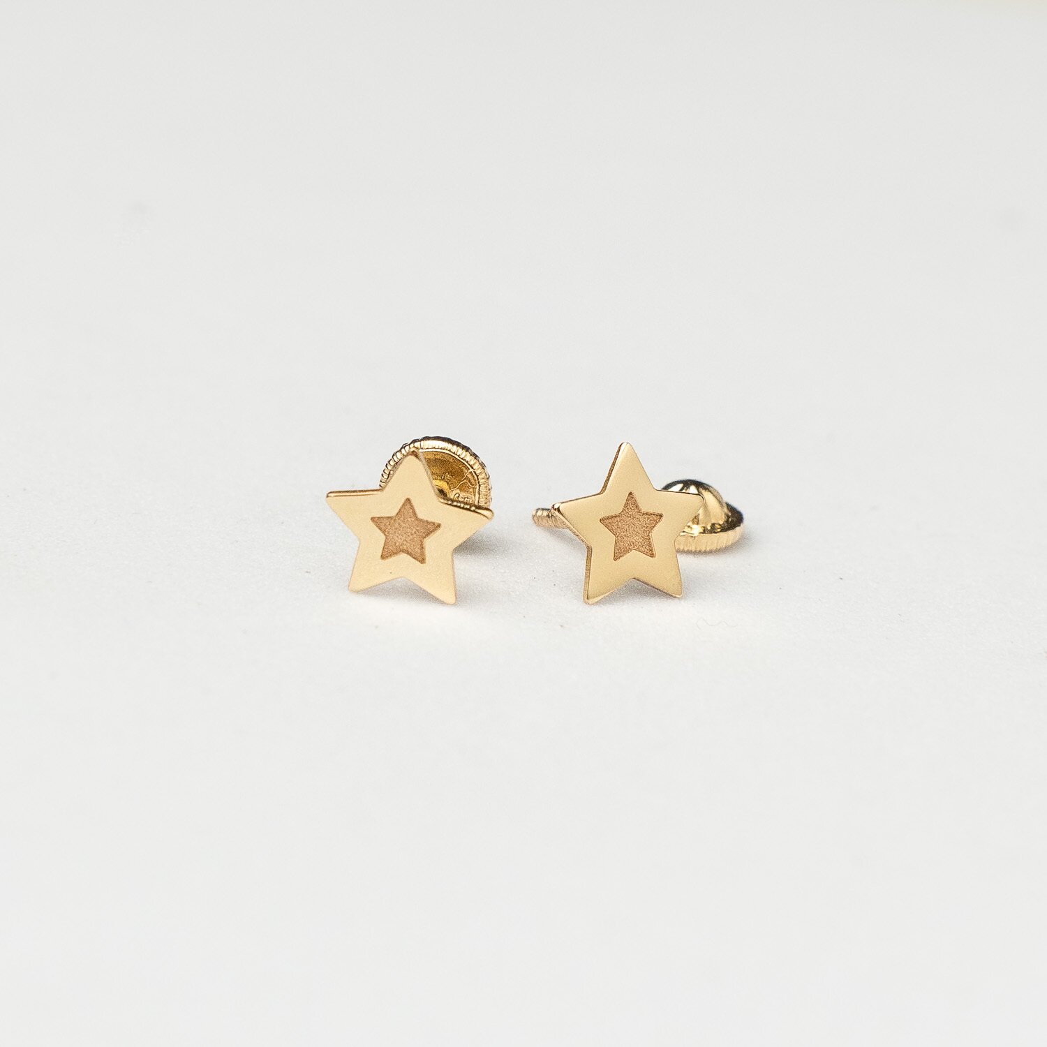 Cercei copii/bebe - Model steluta - Aur Galben 14K - Inchizatoare sigura si confortabila cu filet