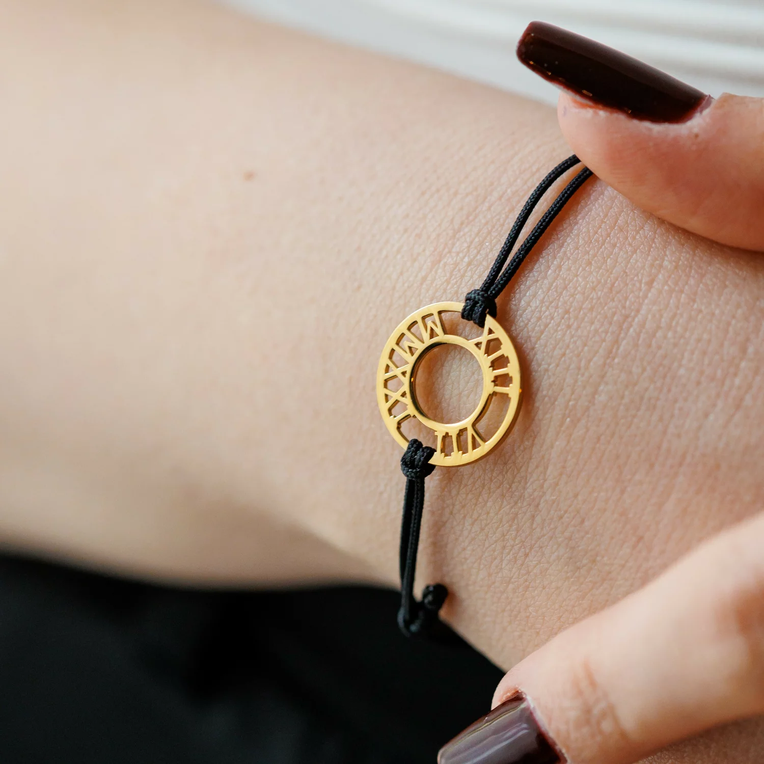 Batara Cercul Roman - Model cu cu data nasterii in cifre romane - Argint 925 placat cu Aur Galben 18K - Snur reglabil