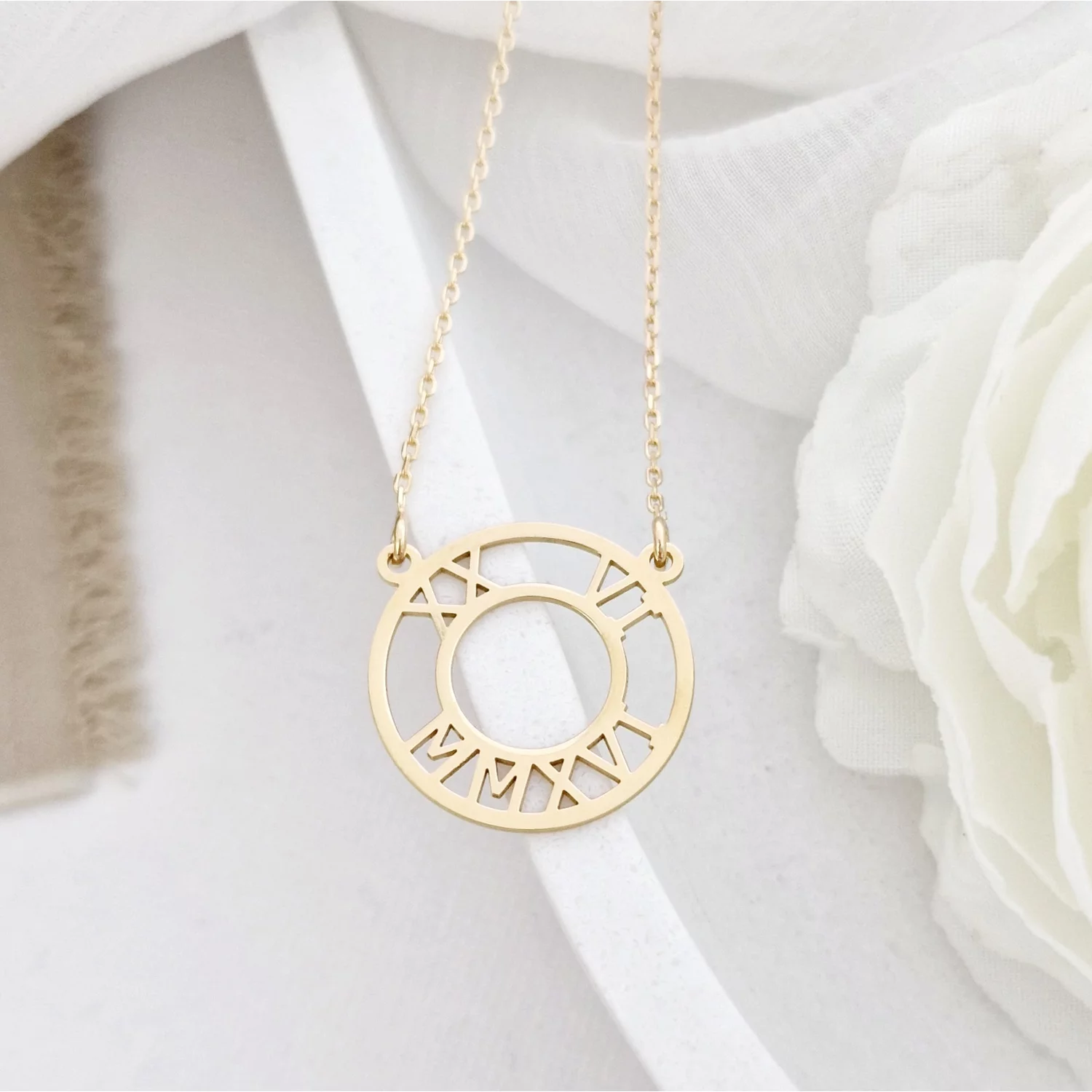 Lantisor Cercul Roman - Pandantiv cu data nasterii in cifre romane - Argint 925 placat cu Aur Galben 18K