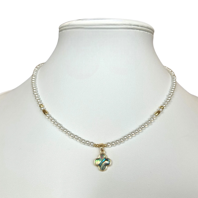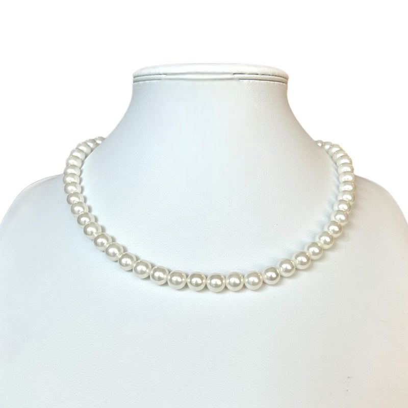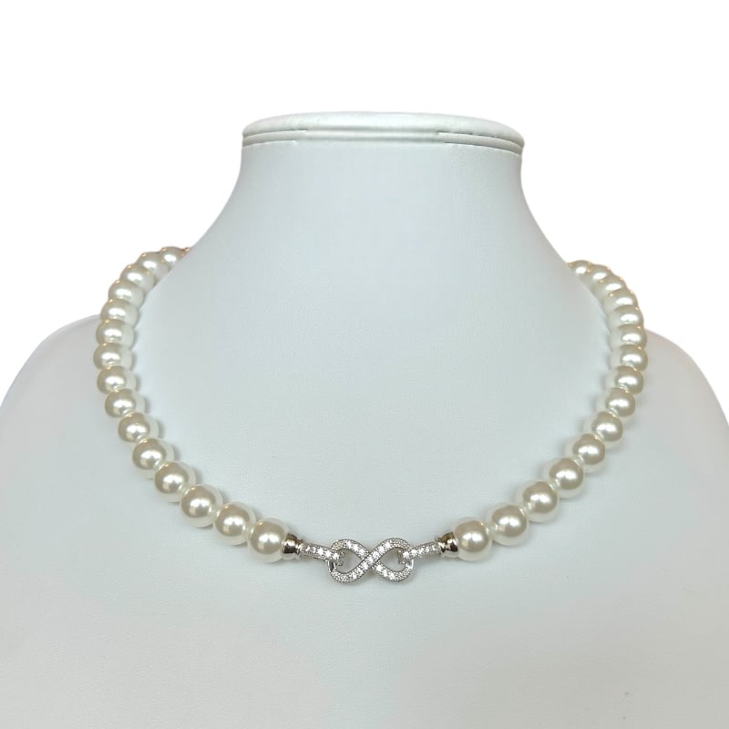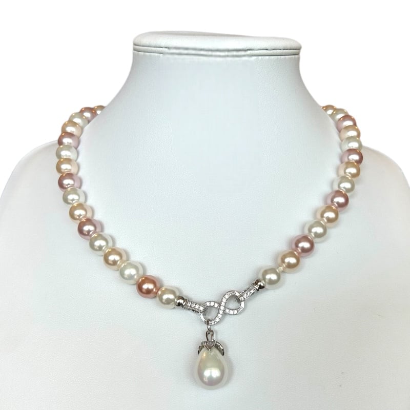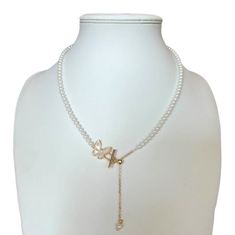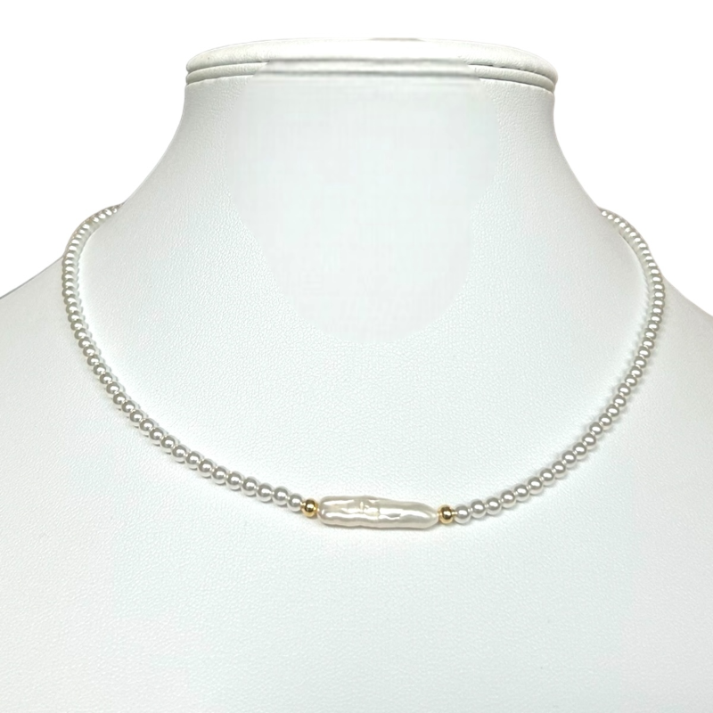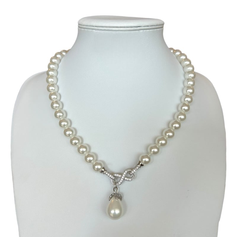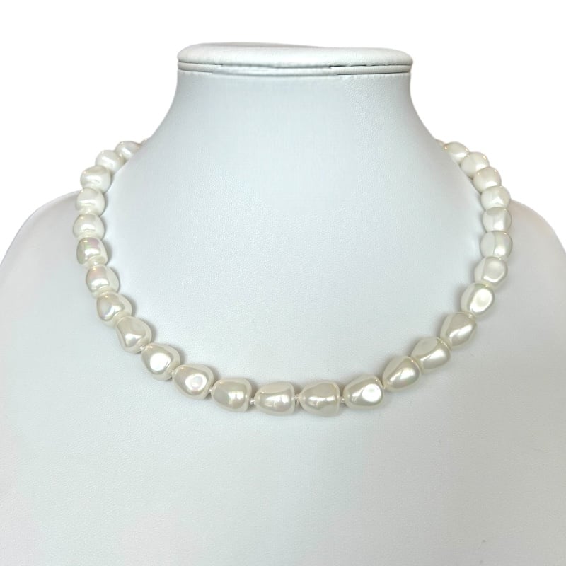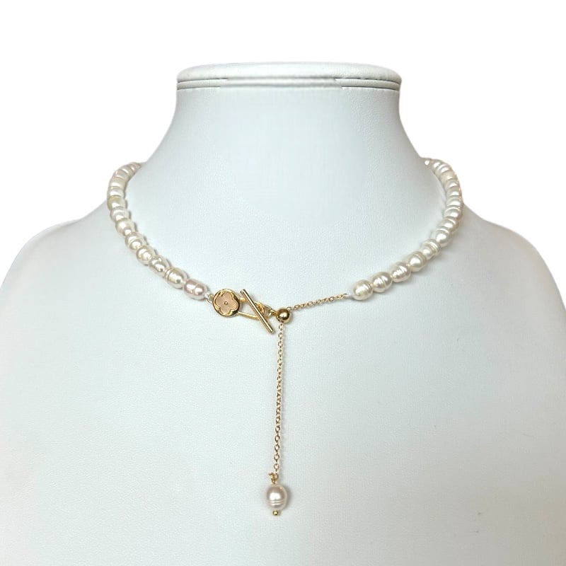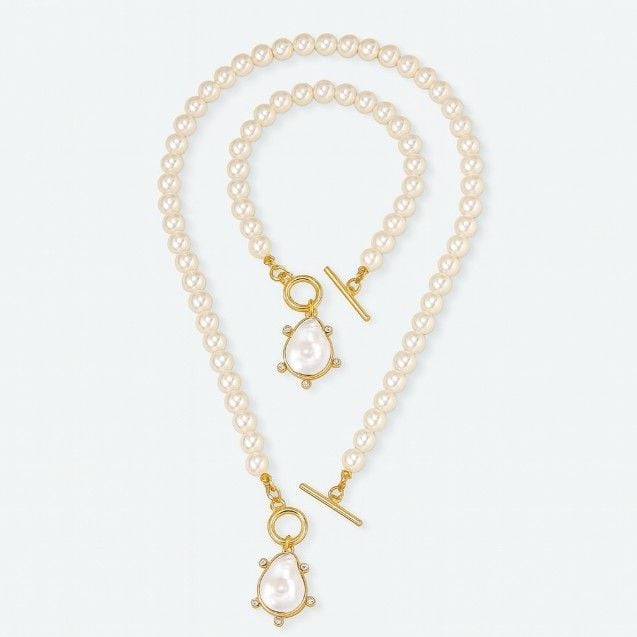 Set Elegant cu Colier si Bratara Perle, Accente Aurii, Pandantiv Tip Baroc, Stil Clasic Engros