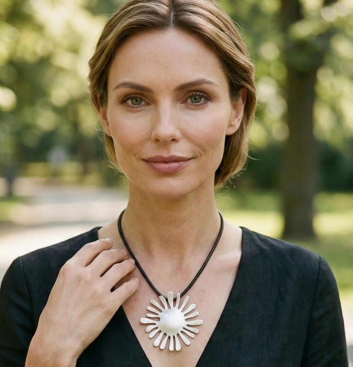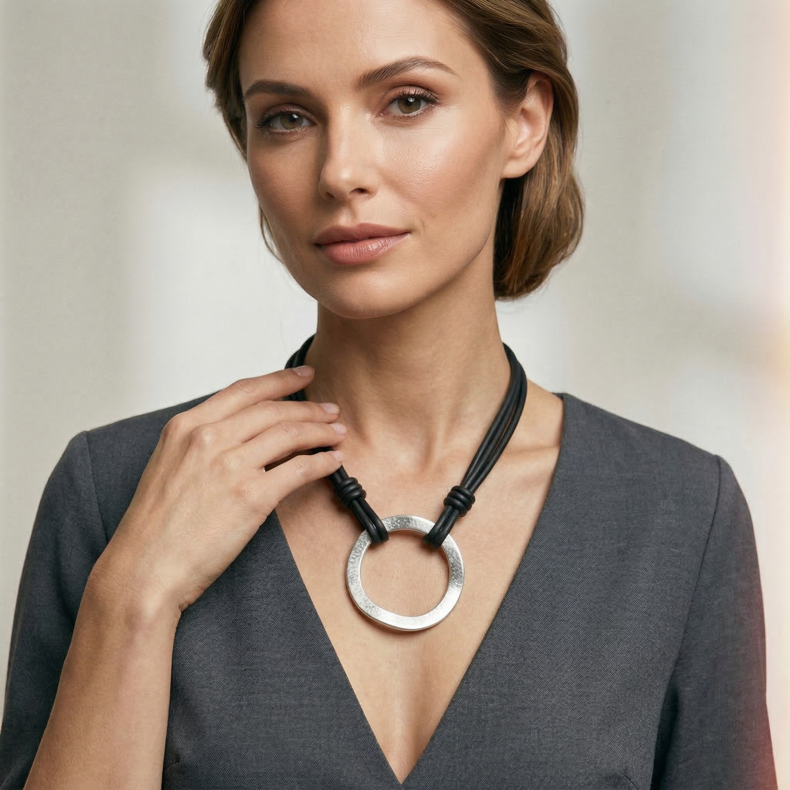 Colier dama cu pandantiv argintiu antichizat statement pe silicon