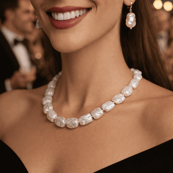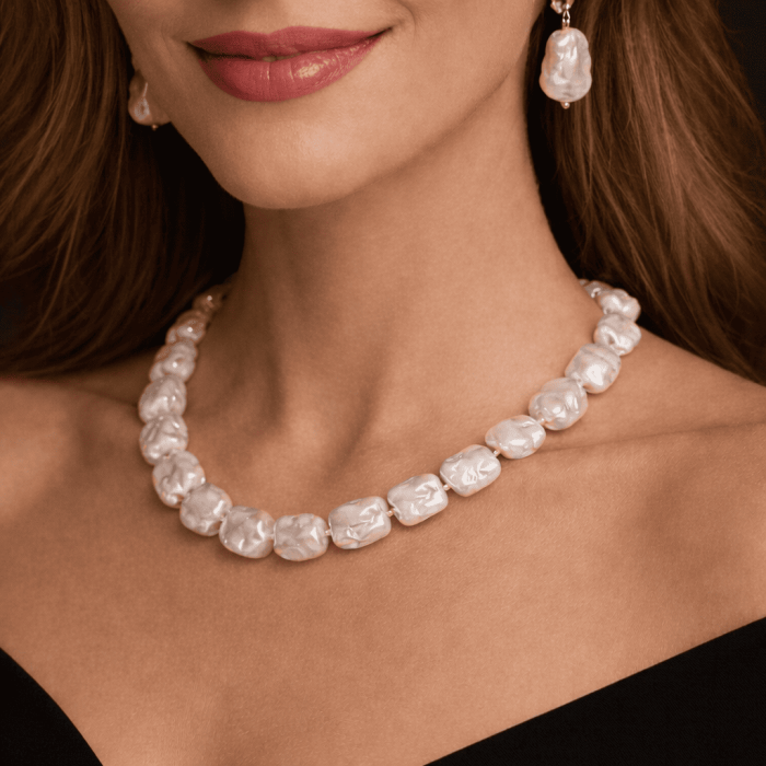 Colier Perle Naturale Baroque Albe si Inchizatoare Argint 925 KASKADDA