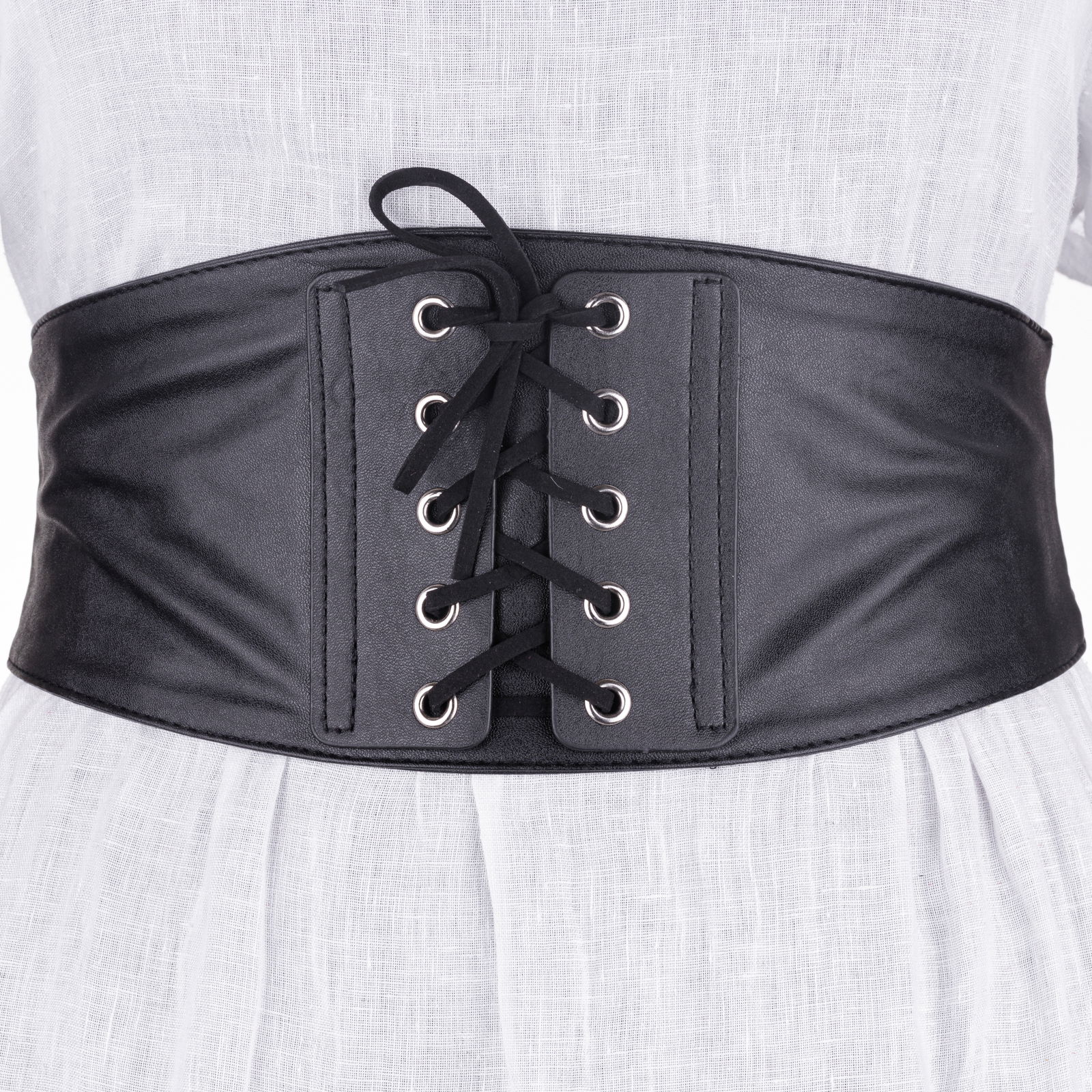 Centura corset lata din piele ecologica cu siret si elemente metalice
