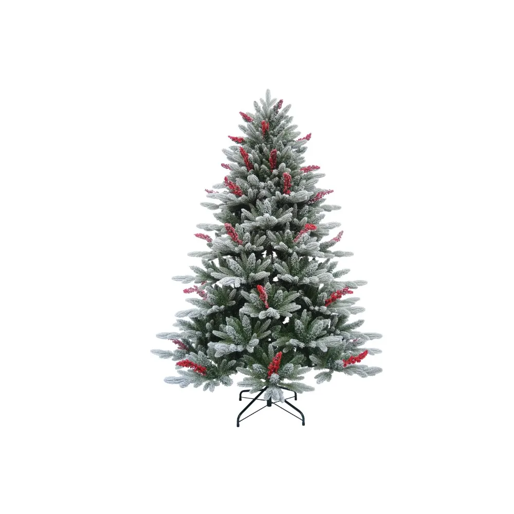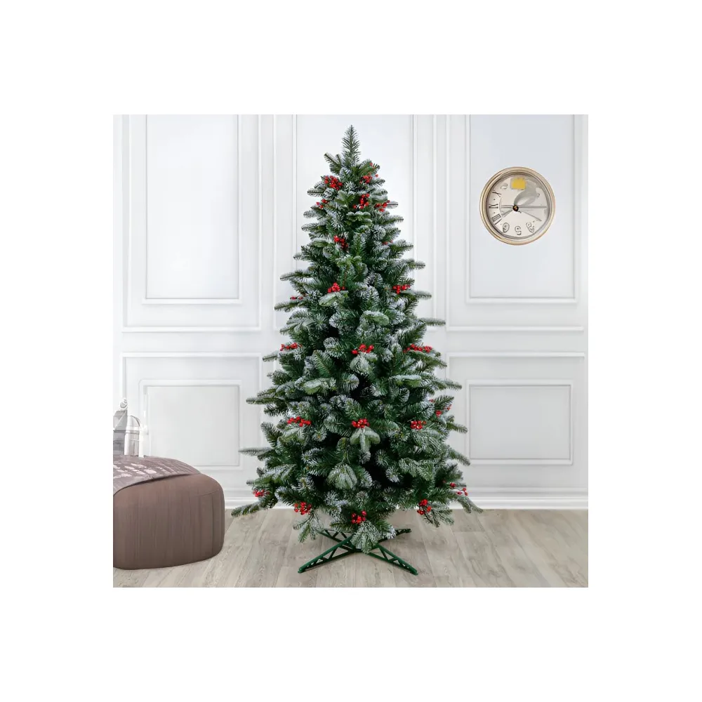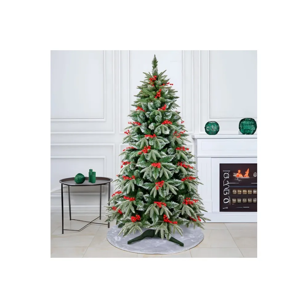 Brad Artificial de Craciun cu Ramuri Ninse, Verde cu Fructe Rosii, 240 cm, Suport Inclus - INV8080986
