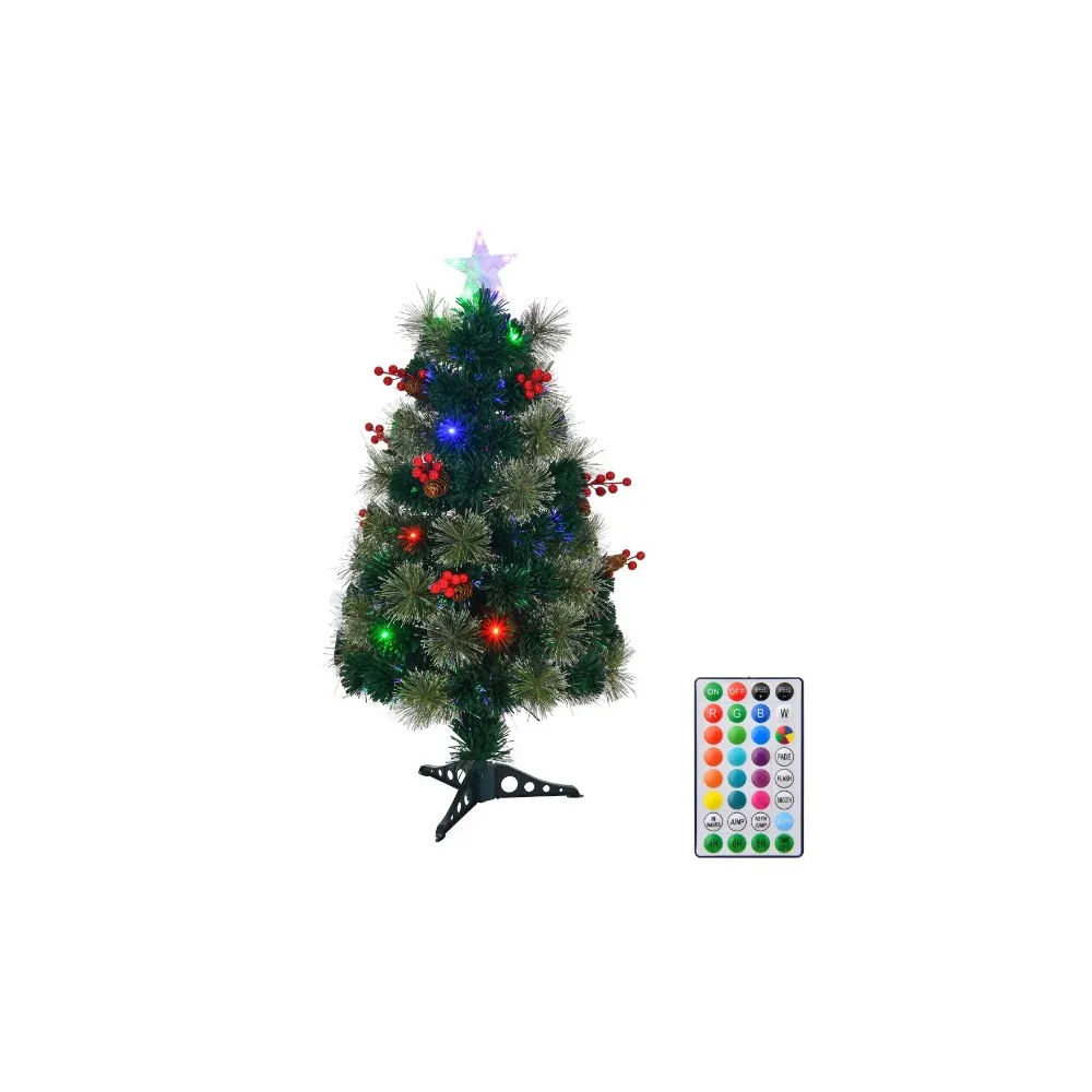 Brad Artificial Fibra Optica de Craciun, 32 LED-uri RGB, cu Telecomanda, 90 cm - INV1082709