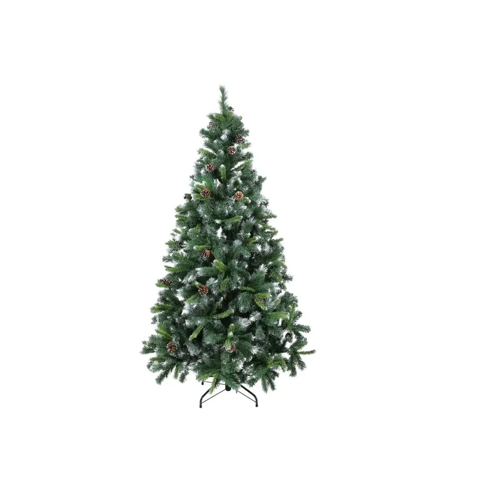 Brad Artificial de Craciun, cu Ramuri Inghetate + Conuri, Verde + Alb, 180 cm, Suport Inclus - INV8066753