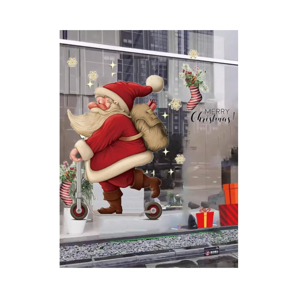 Sticker Perete Autocolant Mos Craciun pe Trotineta, 27x39cm, model Geam - 78888