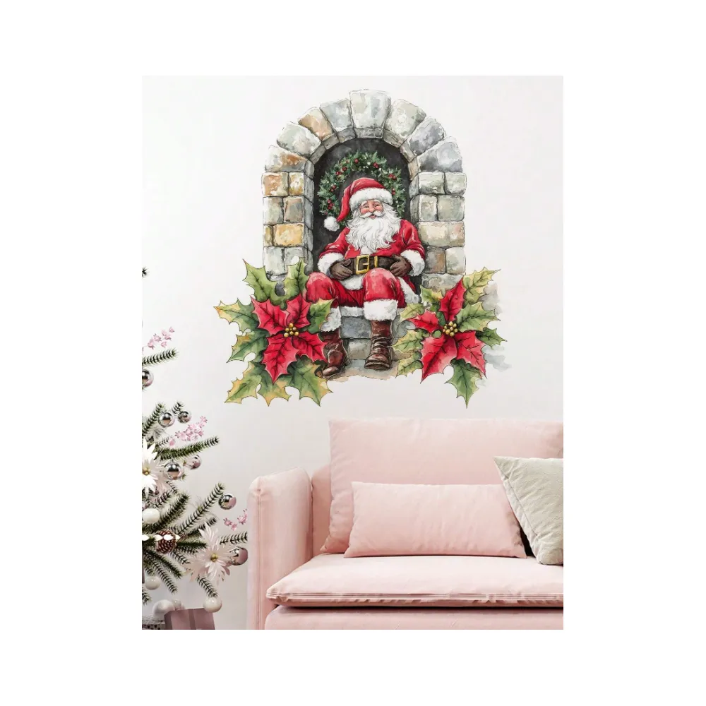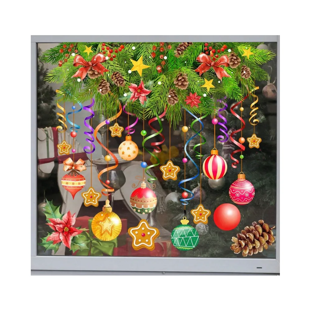 Sticker Perete Autocolant Decoratiune Funda de Craciun, 45x60 cm, model Geam - 73577