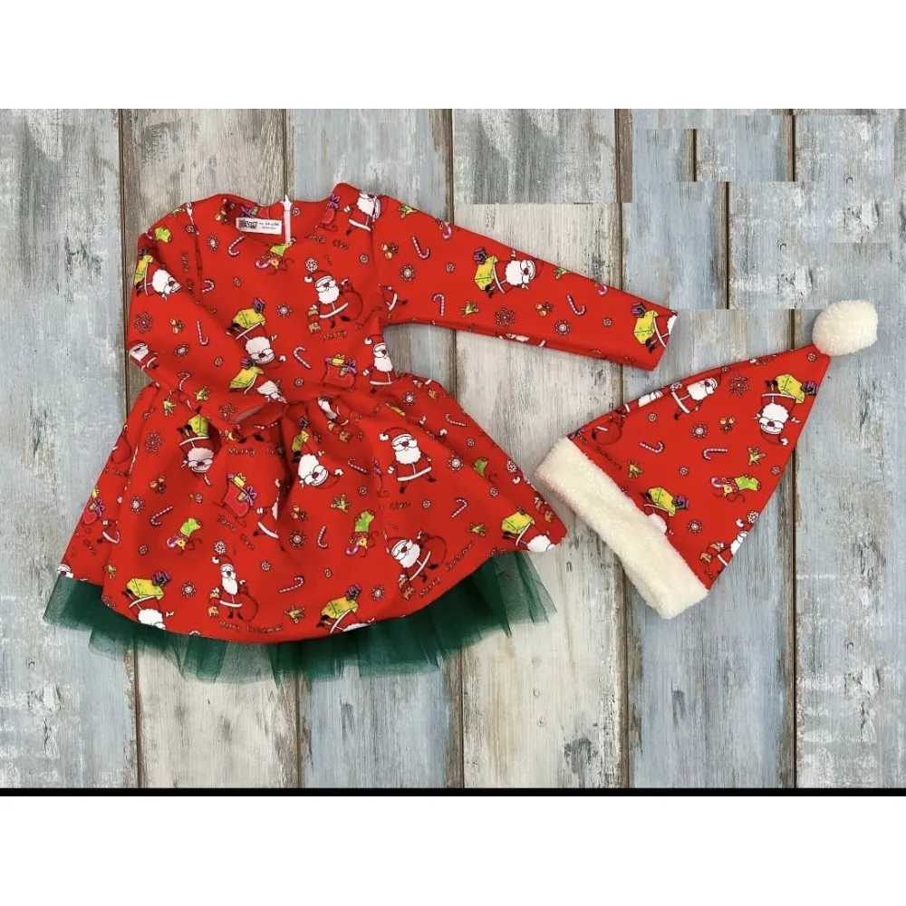 Rochita Rosie de Craciun cu perle si Caciulita - NNK113
