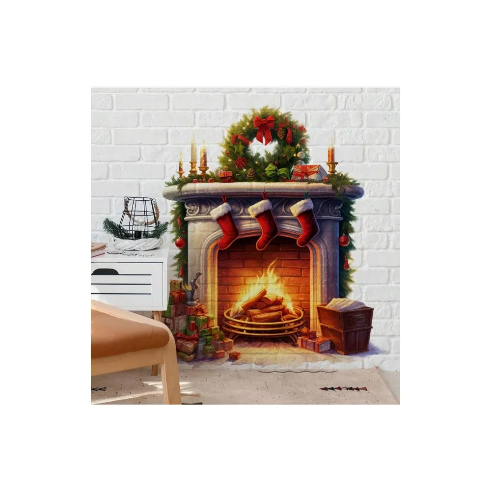Sticker/Autocolant Craciun cu Seminiu si Sosete 27x40cm - 222507