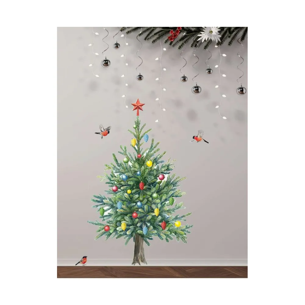 Sticker/Autocolant Craciun Brad cu Pasari, Globuri si Cadouri - 139337
