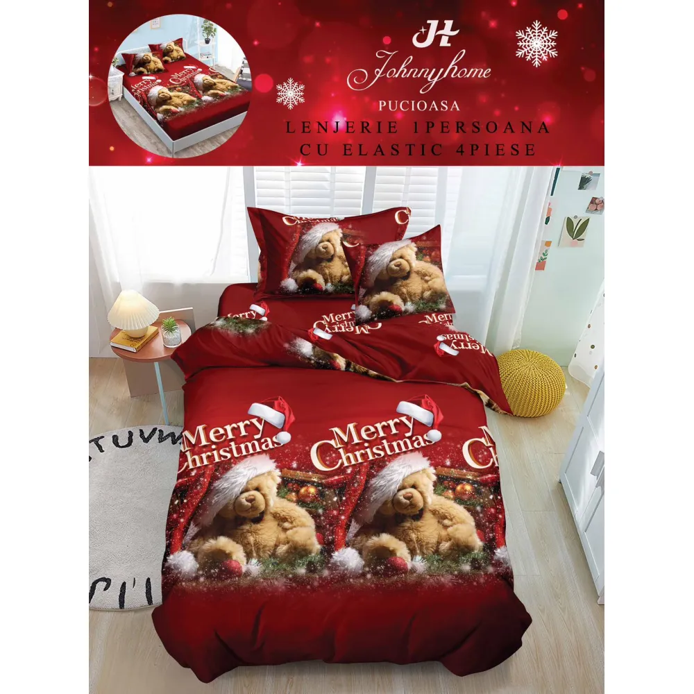 Lenjerie de pat 1 Persoana - Model de Craciun - SPR404039