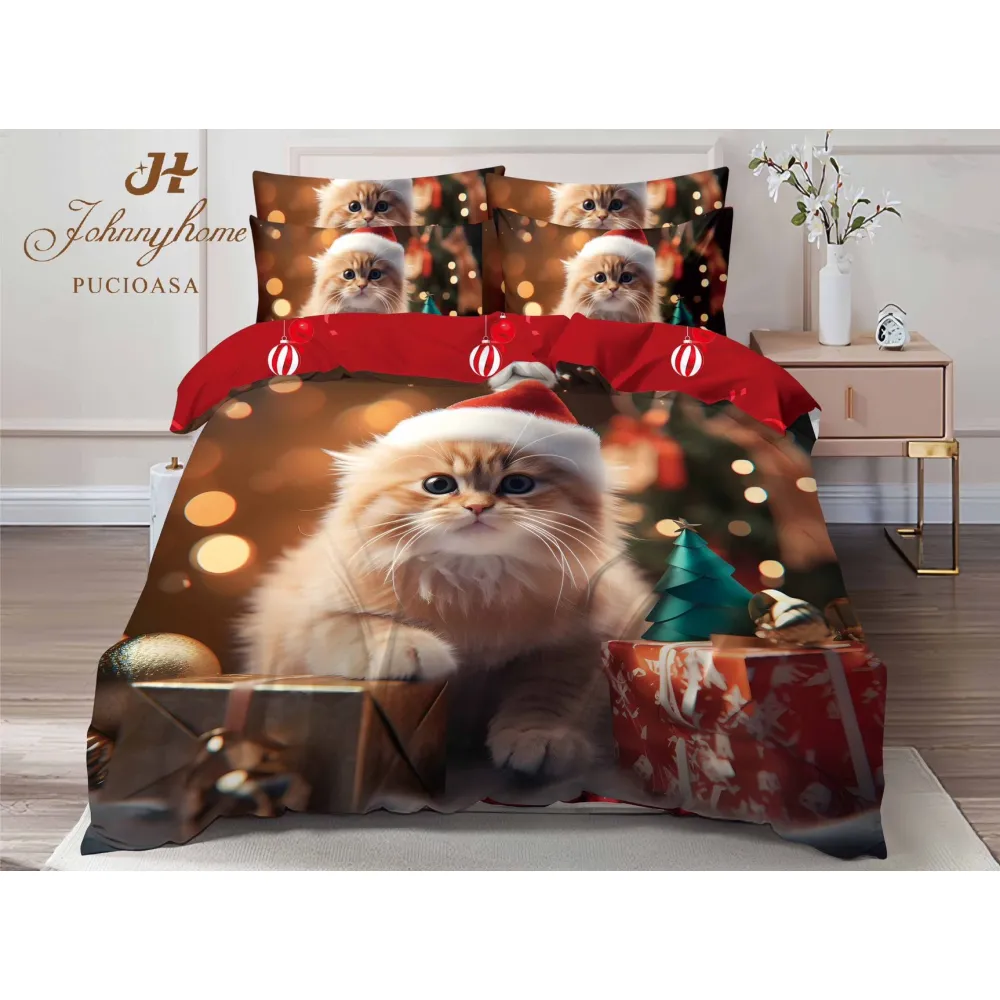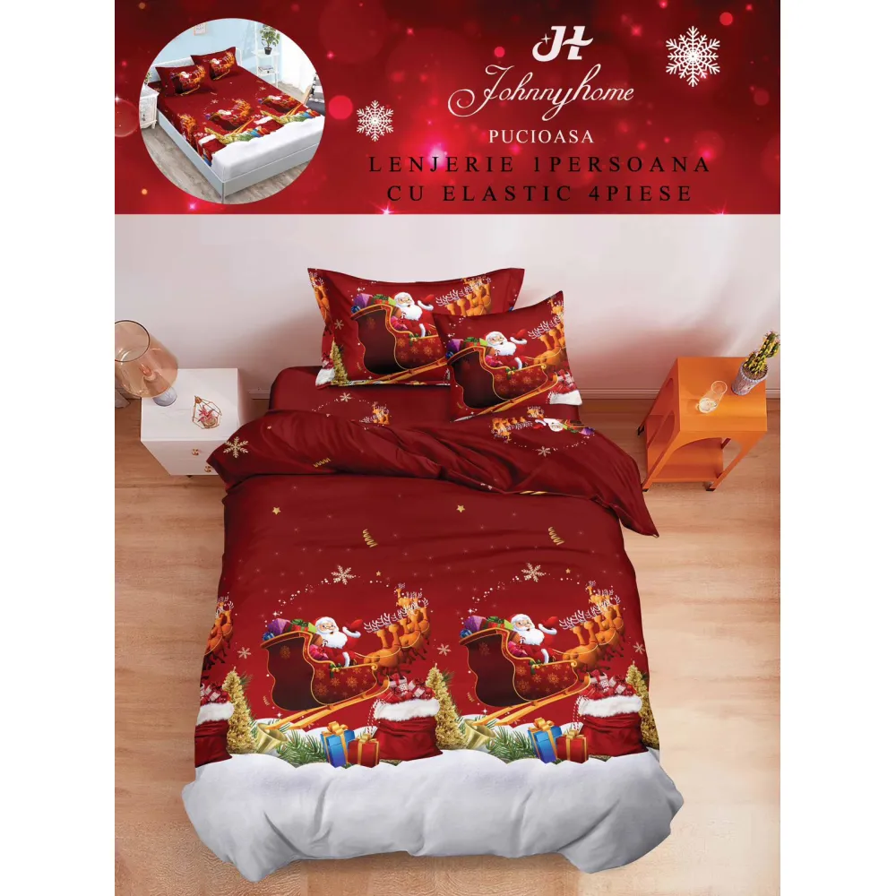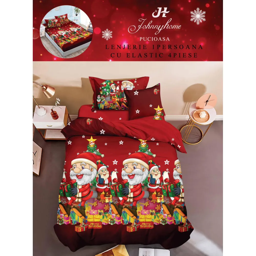 Lenjerie de pat 1 Persoana - Model de Craciun - SPR404035