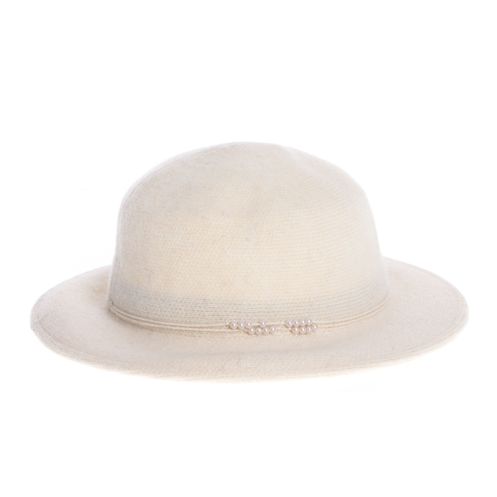 Palarie crem cu bor ingust si decor cu perle delicate