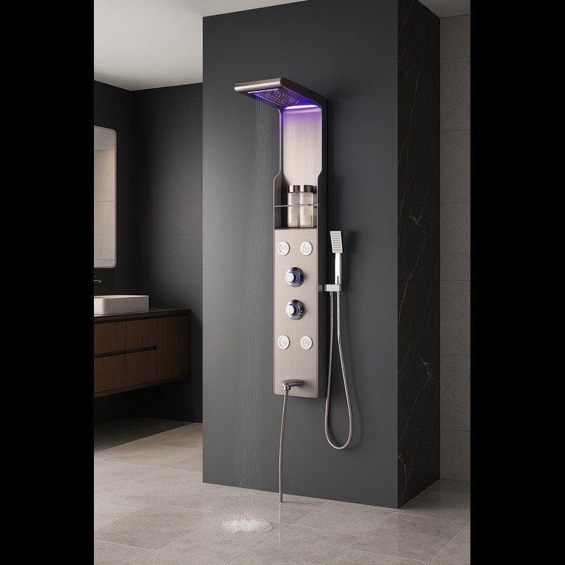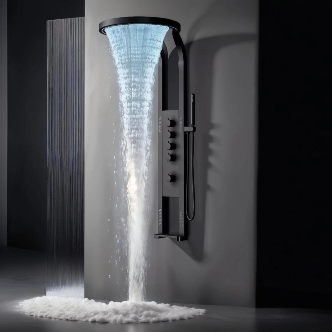 Panel de Dus cu Efect de Ploaie si Jeturi cu Masaj, Design Unic, LED Incorporat, Negru
