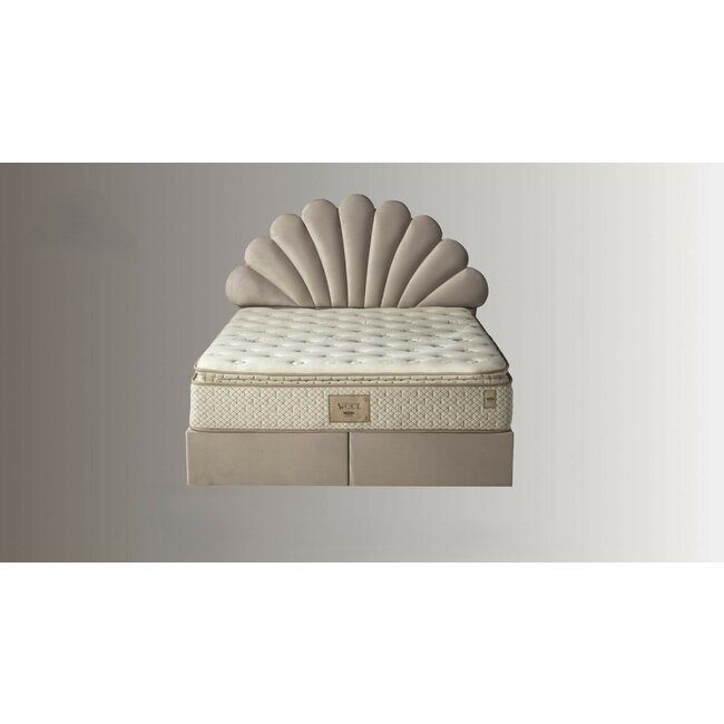 Set pat tapițat Daisy 160x200 cm crem cu somieră rabatabilă, ladă depozitare și saltea inclusă