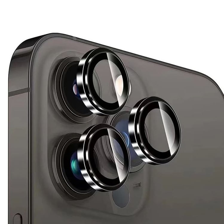 Folie camera, Individuala, Compatibila cu iPhone 13 Pro/13 Pro Max, Sticla, Negru Engros