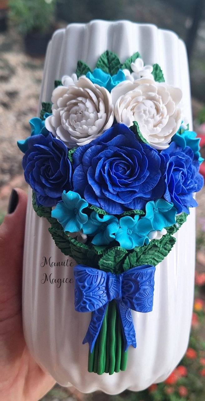 ? Vază decorativă cu flori lucrate manual - Buchet albastru