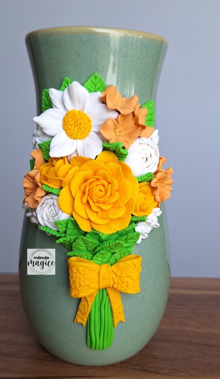 ? Vază decorativă cu flori lucrate manual - Buchet galben