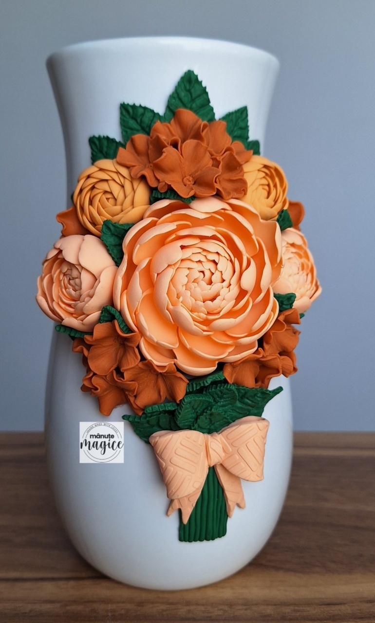 ? Vază decorativă cu flori lucrate manual – eleganță și rafinament în fiecare detaliu