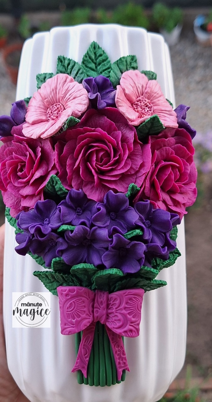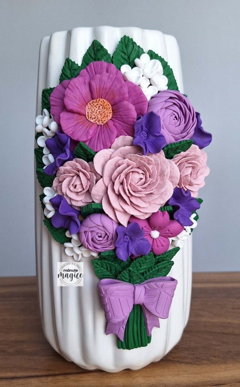 ? Vază decorativă cu flori lucrate manual - Buchet violet