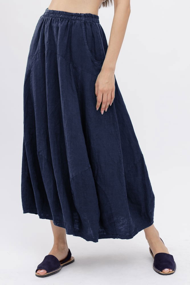 Fusta din in ampla, stil lalea, lunga, bleumarin, cu buzunare Talie unica