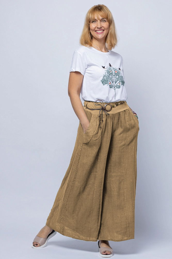Fusta pantalon camel, casual, din in, cu o curea fancy Talie unica