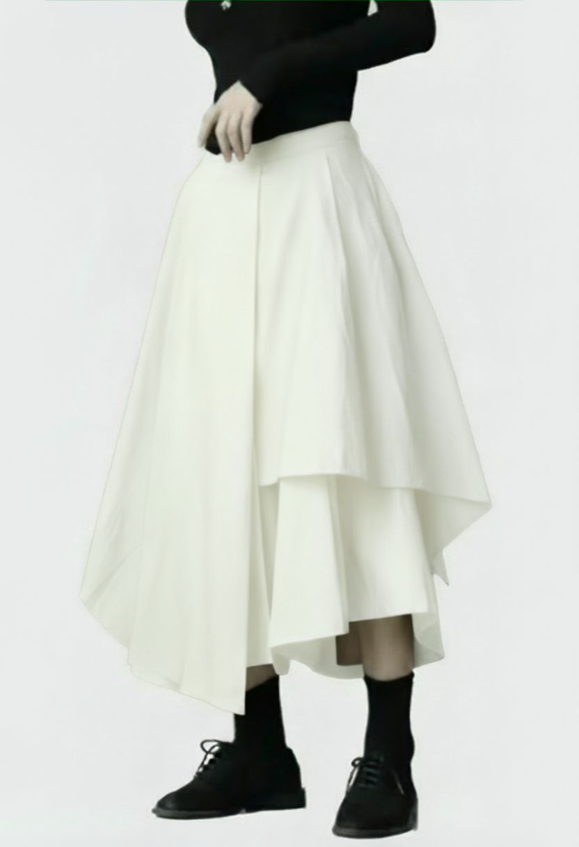 Fusta pantalon, suprapusa, asimetrica, eleganta, cu croi amplu, alba Talie unica