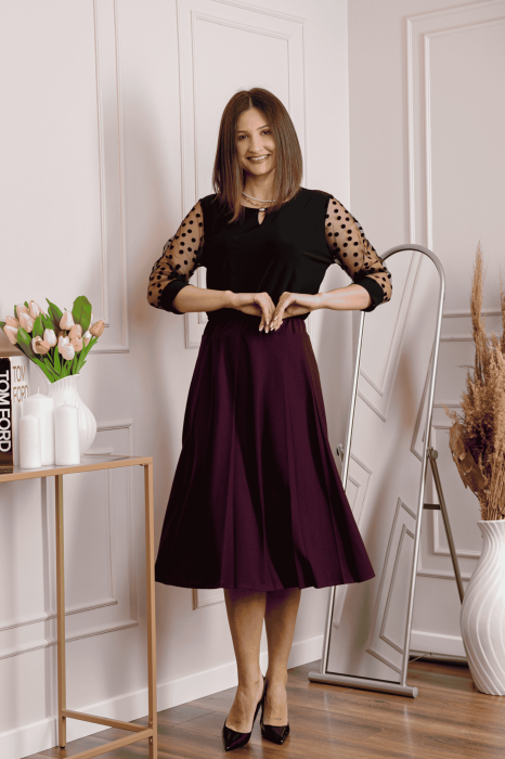 Fusta office plisata Ruby cu centura in talie - Visiniu