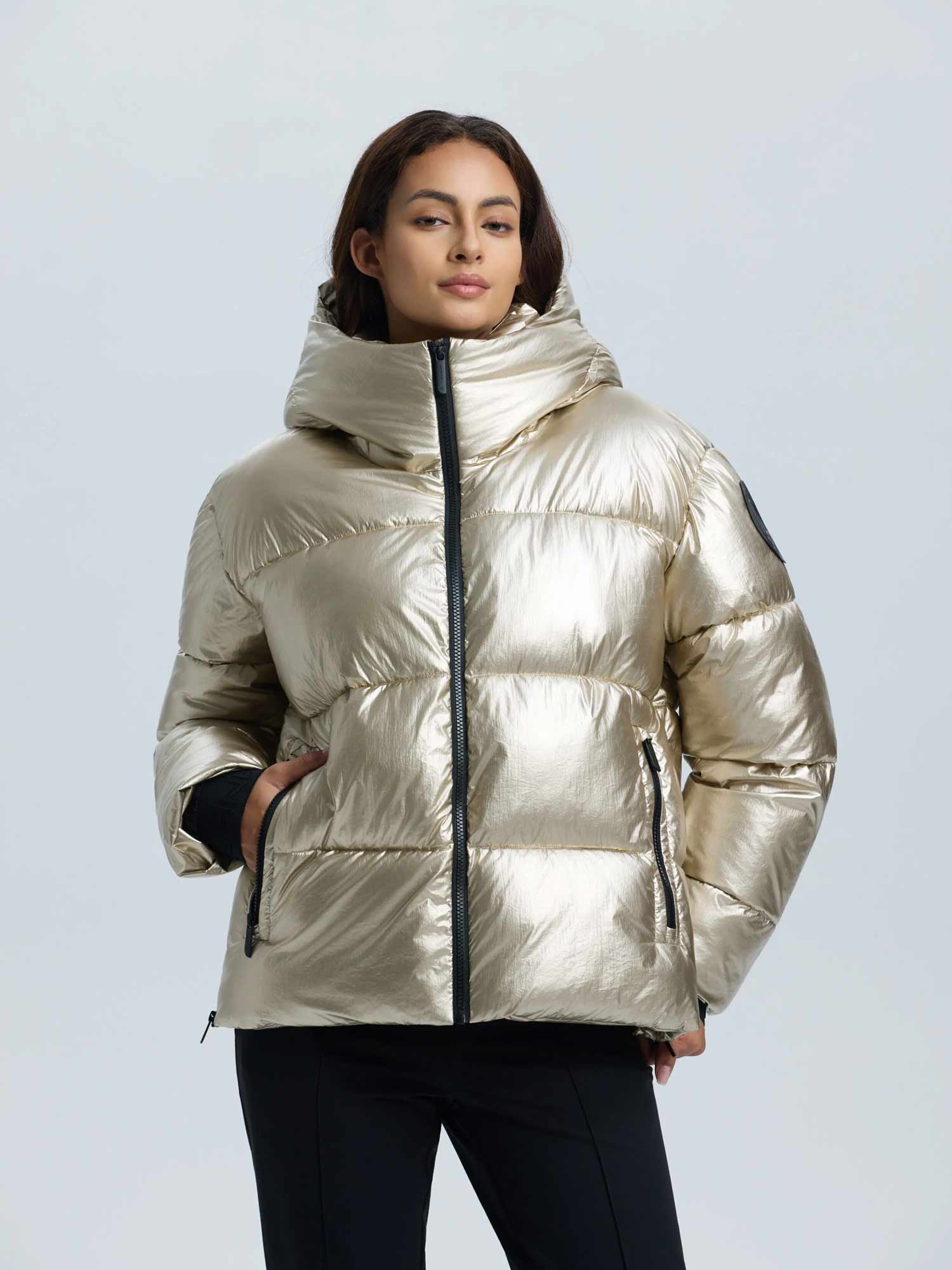 Geaca matlasata - cu guler ridicat - poliester - bej