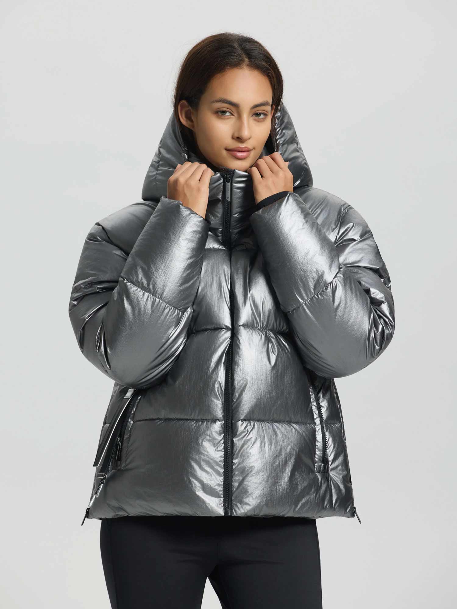 Geaca scurta - gri - cu maneci supradimensionate - buzunare laterale - poliester -