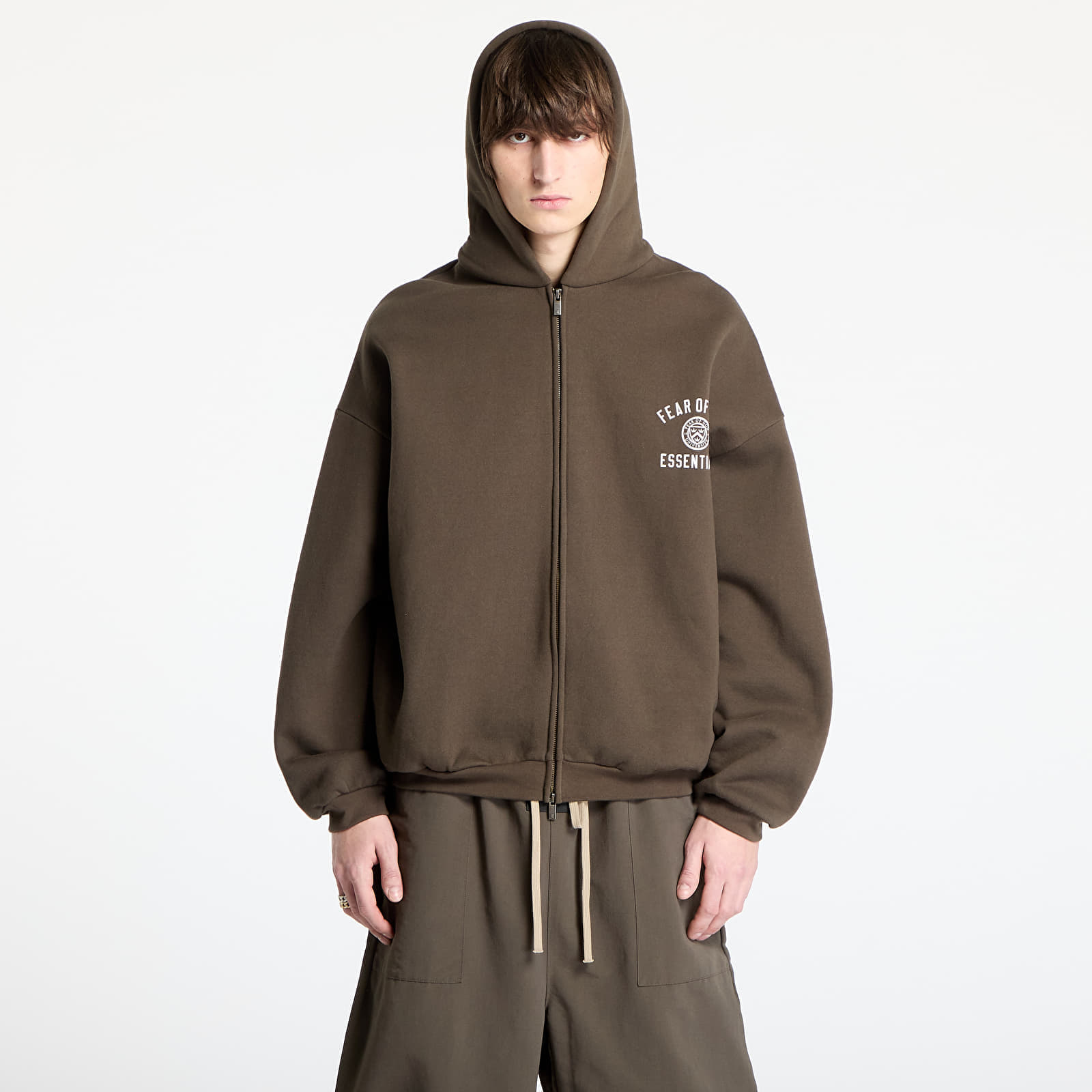 Hanorac Fear Of God ESSENTIALS Heavy Fleece Fullzip Hoodie Brown