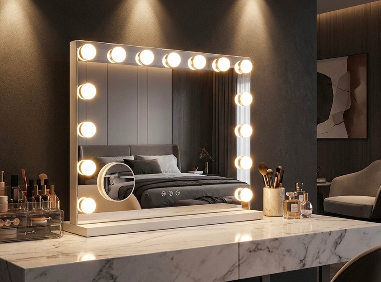 Oglinda de masa cu LED-uri, Mauro Ferretti, Hollywood, 55x14x43 cm, fier, alb