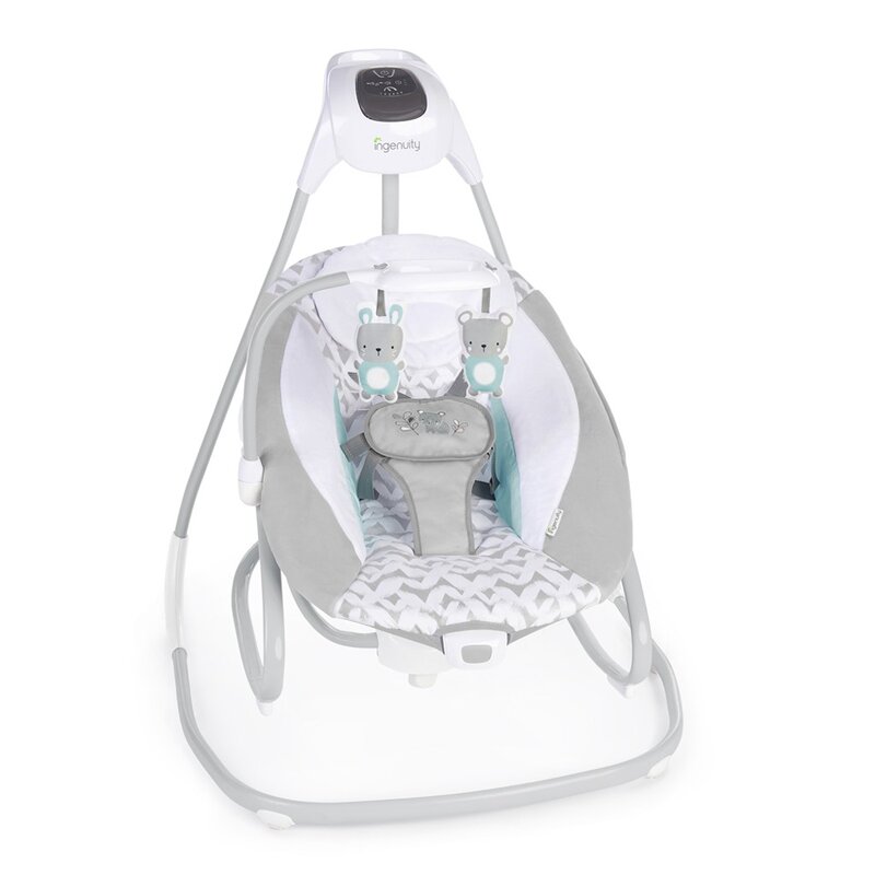 Balansoar si sezlong bebelusi, Ingenuity, Raylan, 6 viteze balansare, 3 directii, Vibratii, Sunete natura si melodii, Temporizator 30/45/60 min, Husa lavabila, Pliabil cu maner si roti, Fara BPA, 0 luni+, Multicolor