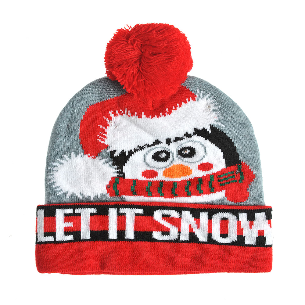 Caciula gri cu pinguin Let it snow