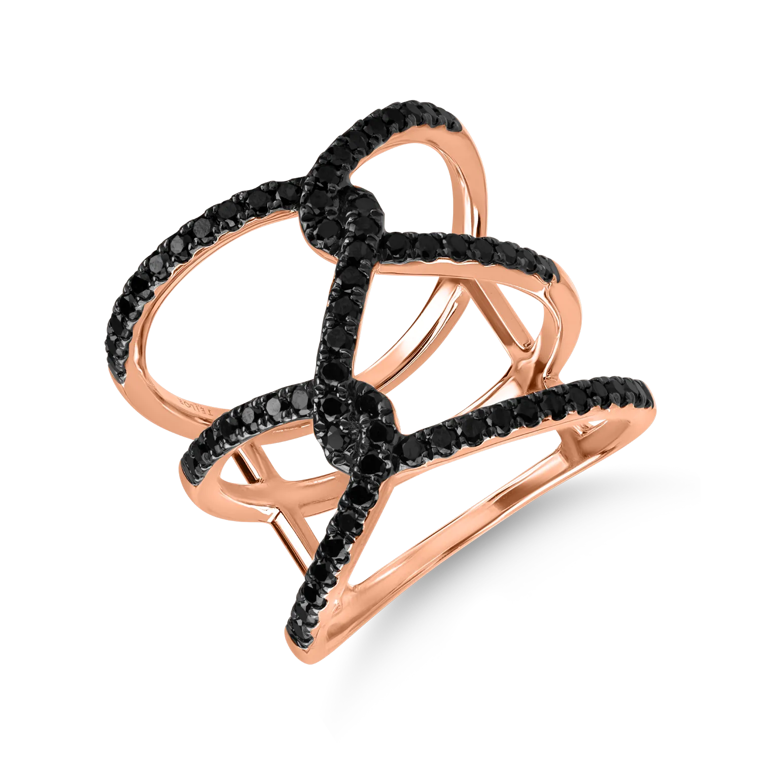 Inel geometric din aur roz cu diamante negre microsetting de 0.7ct
