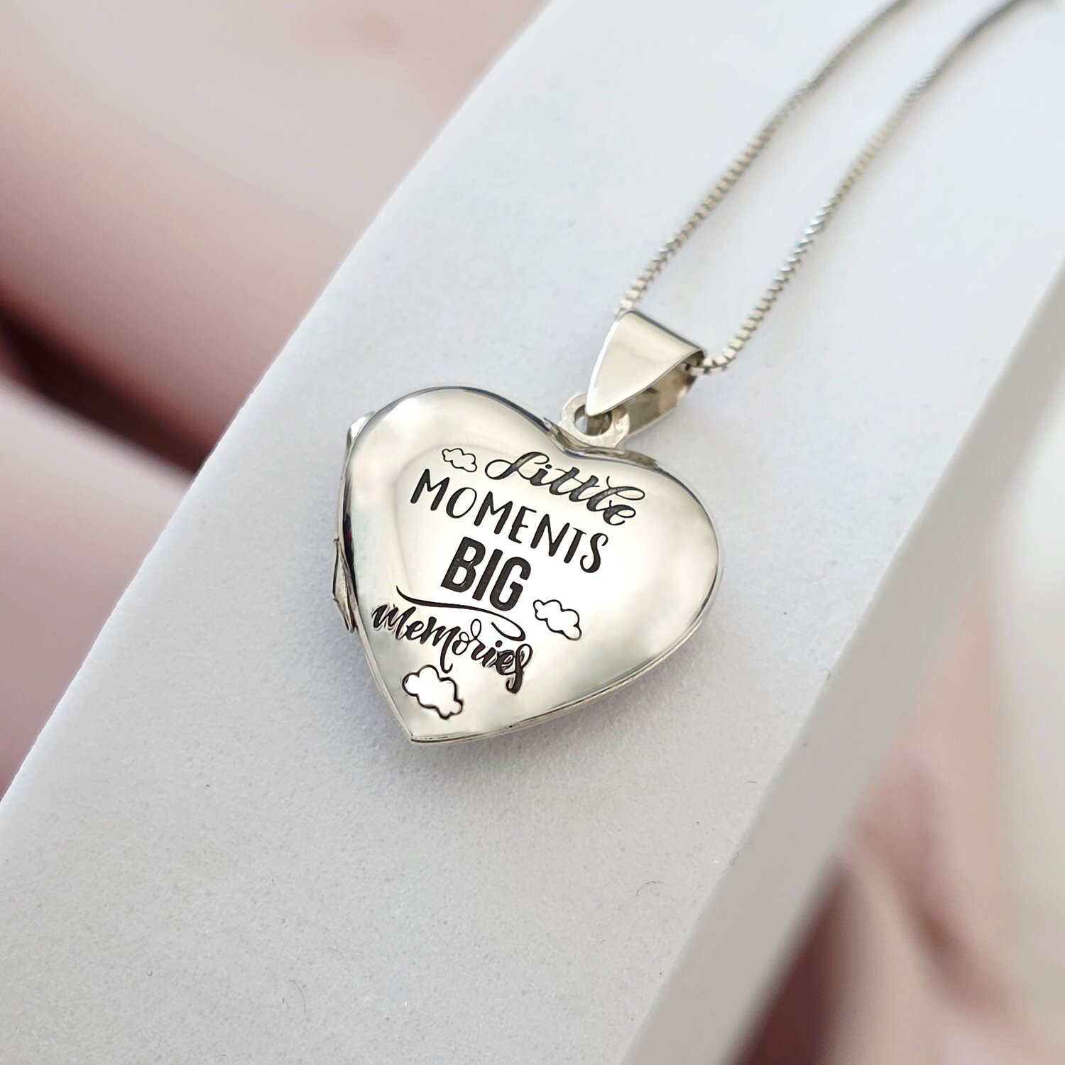 Lantisor cu medalion inima 20 mm cu poza in interior - Gravura personalizata - Argint 925