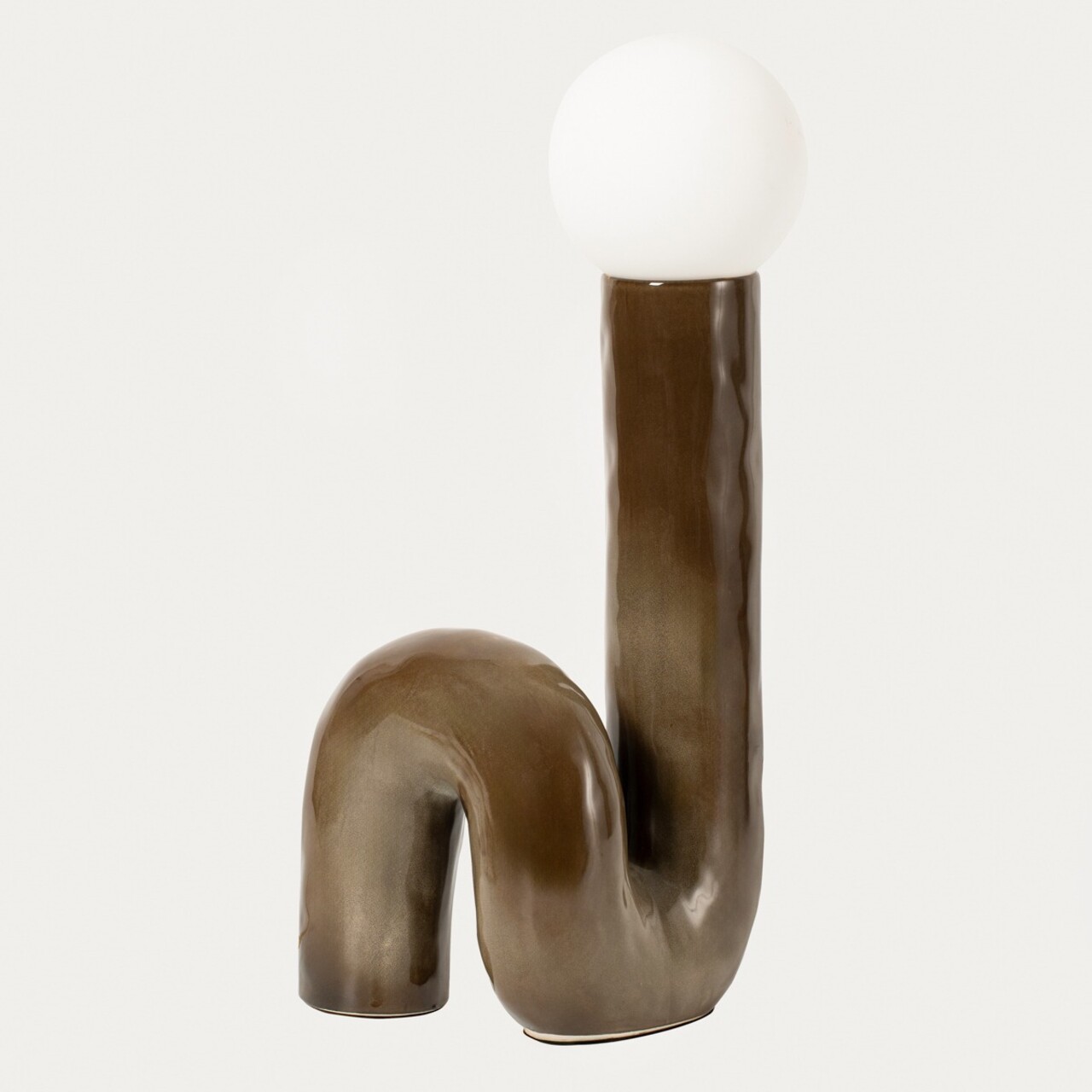 Lampa de masa Ramis, Homla, 19.5x17x45 cm, 25W, ceramica/sticla, maro/alb