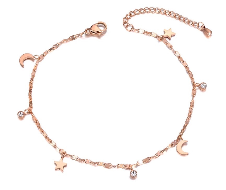 Bratara pentru picior, Stelute si Luna, Rose-Gold Engros