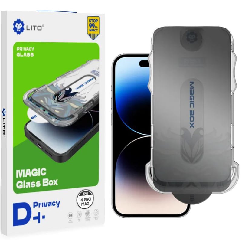 Folie de protectie Ecran Privacy Lito Magic Glass Box D+ Tools pentru Apple iPhone 14 Pro Max, Sticla Securizata, Full Glue