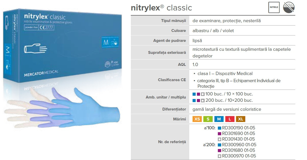 Manusi examinare si protectie Nitrylex Complete nepudrate 100 buc/cutie
