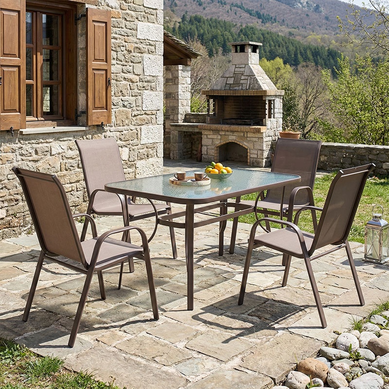 Set Masa si Scaune Gradina Valor-Calan 5 Piese Negru - Maro